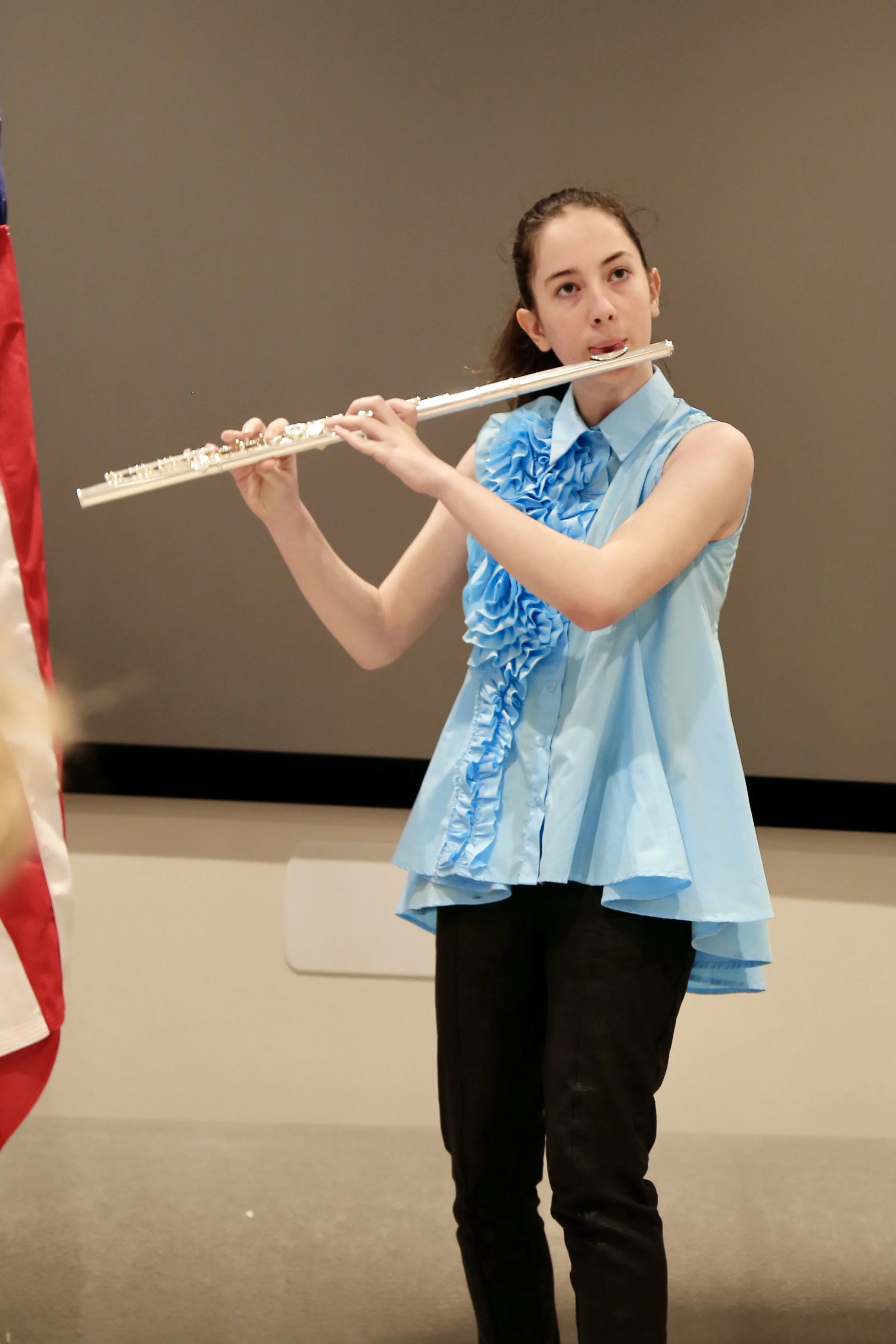Šogad mūsu skolas gada noslēgums bija izteikti muzikāls - Ņujorkas skolai bija tas gods starp daudzajiem īpašajiem viesiem dzirdēt arī jauno flautisti Evelīnu Ērlihu un viņas mammu, starptautiski atzīto pianisti, Dzintru Ērlihu, kura uzstājusies un turpina uzstāties ar solokoncertiem daudzviet pasaulē un šobrīd strādā Ņujorkas Konservatorijā, kur pasniedz klavierspēli, kā arī sniedz meistarklases pianistiem vairākās ASV universitātēs. Evelīna, kura jau savos jaunajos gados ir spējusi iestāties vienlaicīgi divās prestižās Ņujorkas mūzikas skolās, šobrīd flautas spēli apgūst Kaufman Speciālajā mūzikas skolā un Mannes Mūzikas skolā, kā arī ir vairāku starptautisku konkursu laureāte gan ASV, gan Eiropā, gan Latvijā, starp kuriem jāmin nupat iegūtā 1.vieta starptautiskajā konkursā "Little Mozart International Music Competition 2025", spēlējot flautu slavenajā Kārnegija koncertzālē, konkursa noslēguma koncertā. Tā mammas un meitas muzikālais sniegums bagātināja sarīkojumu.